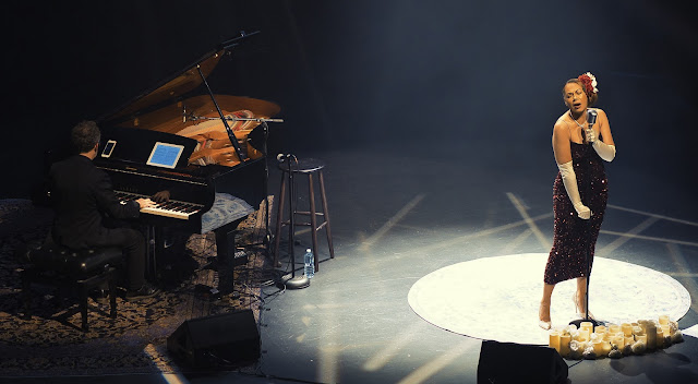 lights dimmed the three dancers took up positions on the floor and when the sounds